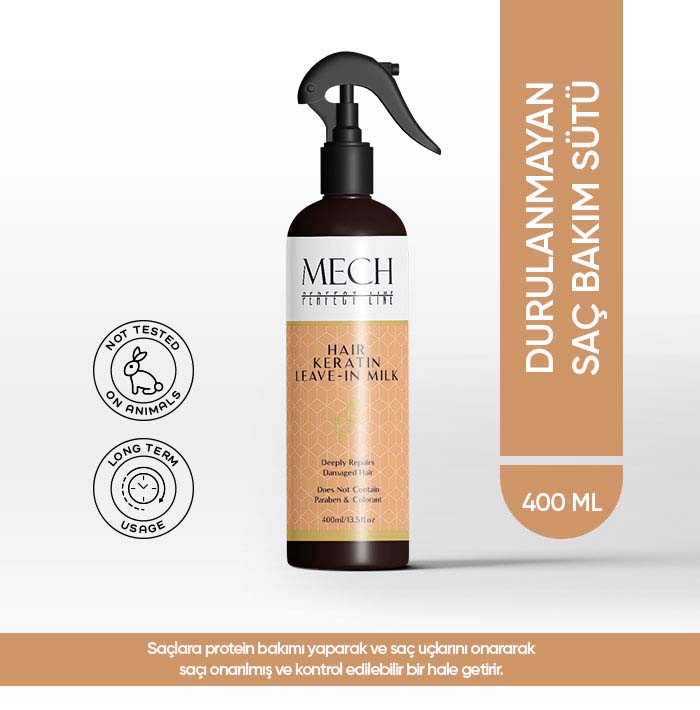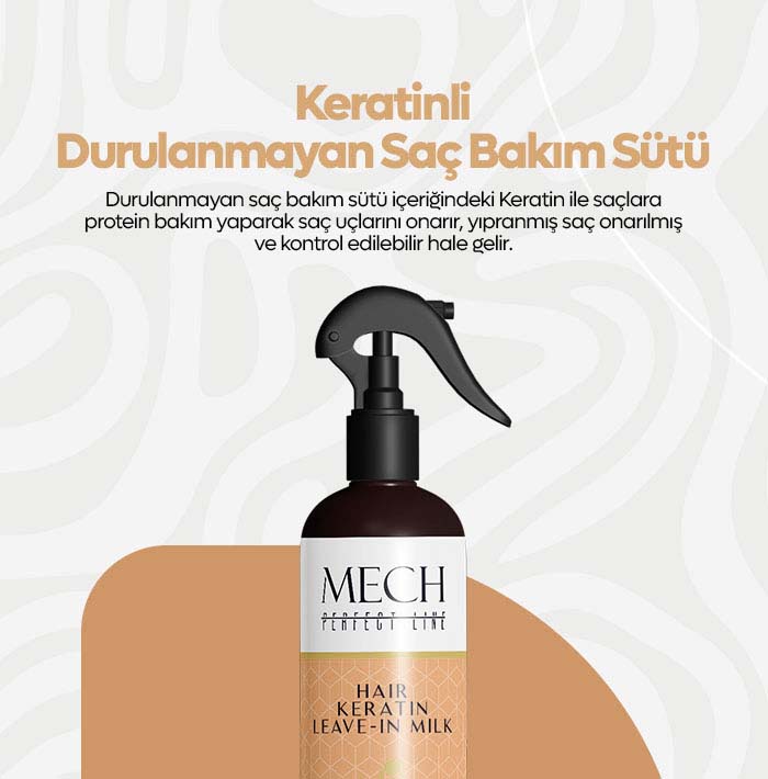 Durulanmayan saç bakım sütü içeriğindeki Keratin ile saçlara protein bakım yaparak saç uçlarını